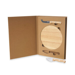 Informações detalhadas: Kit queijo 3 peças MTB 8222 em estojo kraft . Contém faca com ponta, faca reta e tábua. Acompanha embalagem de papelão.