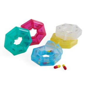 Descrição: Porta comprimidos semanal, feito em plástico.